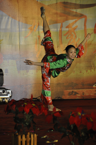 晚会以大艺团的民族舞《幽情古韵》开场,把新生带进温婉江南静谧的小巷中。来自街舞协会的街舞《幻舞空间》让新生领略了时尚动感的潮人文化,劲爆的节奏,精湛的舞技赢得新生的热烈欢呼。话剧团带来的中国传统相声表演《报菜名》引起现场一阵阵笑声。除了学生的节目。老师也参与了这场盛会,团委郑增琴老师的舞蹈《盼军来》,鲁璐老师的歌伴舞《好运来》传递了对祖国60华诞的祝福。由新生辅导员黄兴海、孔读云老师带来的诗朗诵《三江欢迎你》把大家带进对大学生活的美好憧憬里。校园歌手苗建青上台演唱《夜来香》,带大家重温了上世纪七八十年代的经典,深受大家的喜爱。随后来自教官中的代表赵庆源上台演唱《梦驼铃》,掀起台下“弟子”的高涨热情。