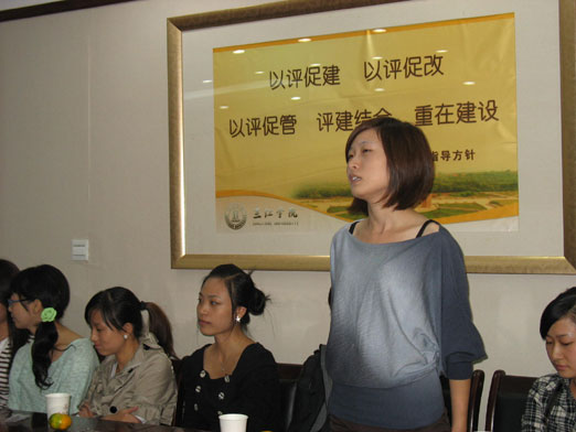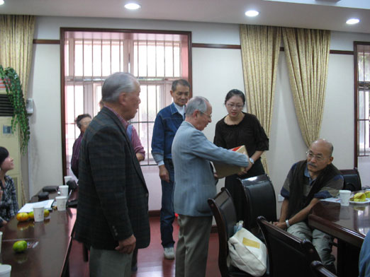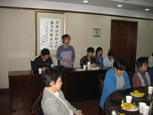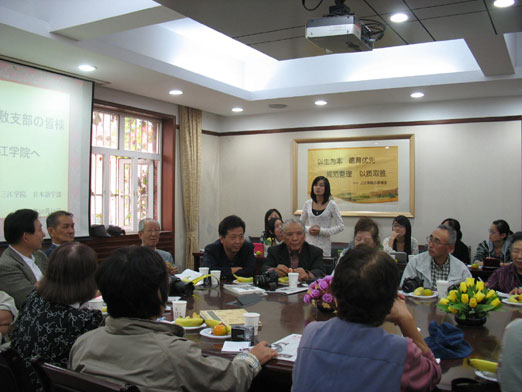 在会议室里,交流气氛热烈而融洽,日本友人从社会、生活等大大小小的方面提出了许多问题,希望了解中国大学生的思想和生活现状。同学们踊跃发言、各抒己见,用日语阐述了很多自己的见解。比如说:“日本的自然风光非常美,民族意识很强,漫画、电器用品也让人爱不释手,但是学生中普遍存在的‘欺凌事件’这一恶现象急待改善;日本的大学生是不住集体宿舍的,而我们中国的大学生一般都是4人或6人住一间宿舍,这种生活很愉快,也让我们这些独生子女学会了如何与他人和谐相处;我们的国家现在变得越来越富强,人民的生活也越来越富裕,但是还存在着贫富差距、东西部发展不平衡、看病难等社会问题,我们新一代大学生一定要发奋图强,把祖国建设成为一个富强、和谐的法制国家;对于30年代的那场中日战争,我们可以原谅但是绝不能忘记。现在在日本有人试图修改维护和平的第九条宪法,这是很危险的,为了和平,为了中日两国的人民的幸福生活,有必要对和平宪法第九条进行保护……”等等话题,活动的最后,日本访问团还向日语系赠送了图书、辞典等。