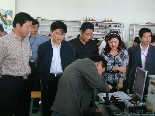 南京市总工会副主席于家华(左二)与有关领导视察竞赛现场
