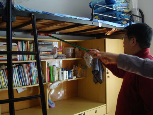 沙院长对学生按标准整理宿舍给予了肯定和赞扬,同时提出了指导性意见:宿舍卫生要注意细节的改善。