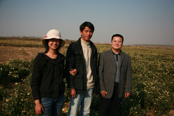 与泗洪县委组织部领导交流结束后,在有关人员的陪同下,王勇部长及记者一行来到秦树峰的杭白菊种植地,记者们争先恐后地与秦树峰进行了交流,就他当初选择村官道路,大胆创业及带领村民致富等有关事宜进行了采访与拍摄。