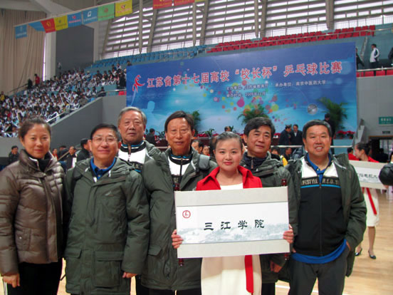 beat365在线唯一官网(校领导)代表队在江苏省第十七届高校“校长杯”乒乓球比赛上合影