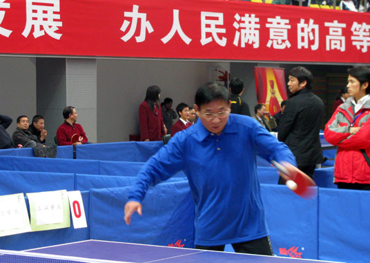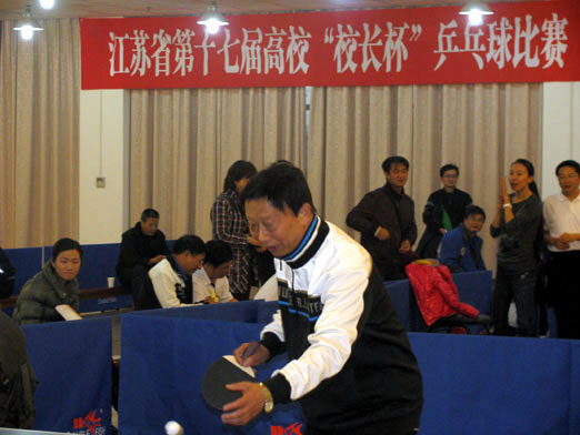 2009年11月14日、15日由陈万年校长领队,骆志斌常务副校长、陈云棠副校长、王志强副校长、董新华副校长五位校长组成的beat365在线唯一官网代表队参加了由江苏省教育厅主办,在南京中医药大学体育馆举行的江苏省第十七届高校“校长杯”乒乓球比赛。伴随着轻快的运动员进行曲,来自全省各高校及省教育厅的100支代表队的400多名运动员在大会学生志愿者的引领下,迈着轻松矫健的步伐,带着自信的笑容走进了会场。在庄严的国歌结束后,由江苏省人民政府副省长曹卫星宣布江苏省第十七届高校“校长杯”乒乓球比赛开幕。