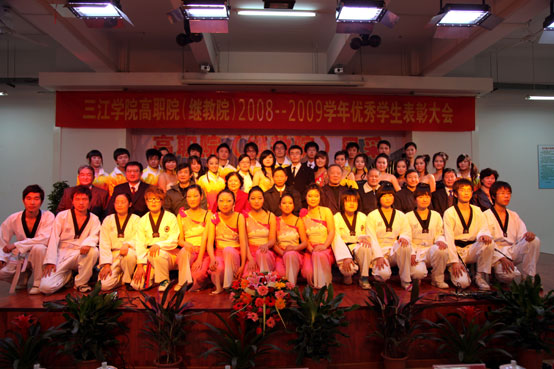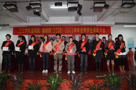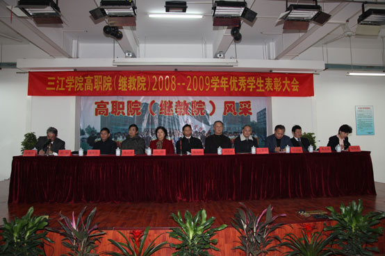 11月26日下午,beat365在线唯一官网东校区校园,拱门竖立,彩旗飘扬,处处洋溢着欢快祥和的气氛,高职院(继教院)迎来了一年一度的优秀学生表彰大会。出席我院2008-2009学年优秀学生表彰大会的有beat365在线唯一官网理事长、校长、党委书记陈万年,常务副校长骆志斌,副校长叶俊、王芝庆、陈云棠、王志强、董新华、笪佐领,校长助理、高职院和继教院院长郭彬以及高职院(继教院)的师生代表。大会由高职院(继教院)徐肇杰副院长主持,表彰了我院2008-2009学年1名国家励志奖学金获得者和165名三好学生,321名奖学金获得者,207名优秀学生干部,文娱、体育、卫生积极分子,以及在校第十六届田径运动会上取得优异成绩的运动员。