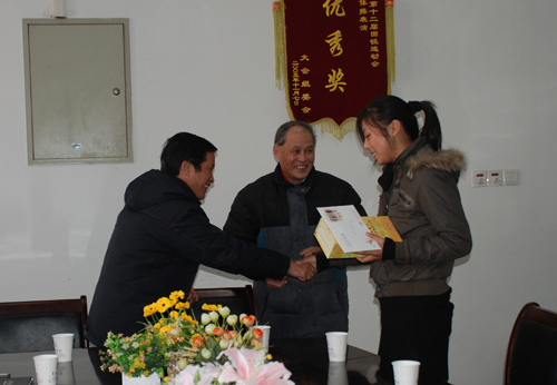 仪式最后,王芝庆副校长和朱银亮部长给韩菊芬同学赠送了纪念品。