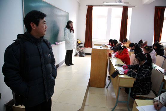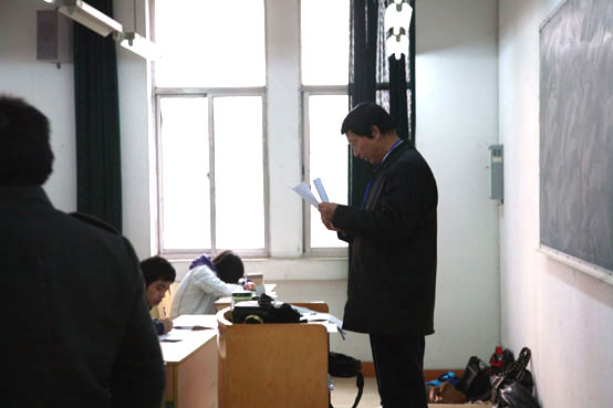 2010年1月4日是本学期期末考试阶段的第一天,上午8点10分,陈万年校长就来到了中心教学楼对各考场进行检查和巡视。在全校师生共同努力下,考场秩序井然,考风良好。陈校长在巡视过程中不仅深入考场检查考试管理、考试秩序、试卷质量以及学生答题等情况,还对参加监考工作的院系负责人、监考教师表示了亲切问候。学校领导和机关部处的中层领导干部将在第19、20周深入各教学楼对期末考试进行巡视和检查。