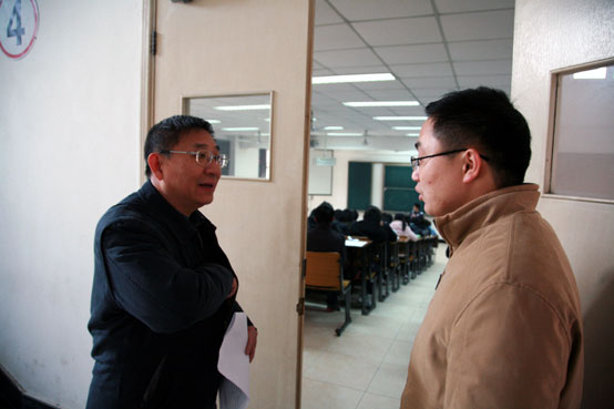 陈云棠副校长与教学质量监控中心赵连泽处长检查开学第一天课堂教学情况