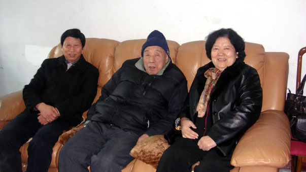 工会副主席、校办主任周更生(右一)随行探望老校长