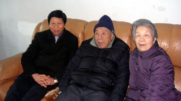 陈万年校长与老校长及老校长夫人李老师(右一)合影