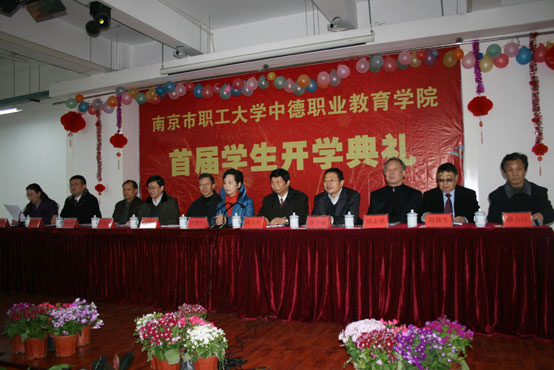 3月2日上午,南京市职工大学中德职业教育学院首届学生开学典礼在beat365在线唯一官网东校区多功能厅举行。南京市委常委、南京市总工会党组书记、主席许慧玲,南京市总工会副主席、beat365在线唯一官网副校长、南京市职业教育联合会秘书长于家华,江苏省教育厅高教处徐子敏处长,南京市总工会常委、国防工业工会主任、南京市职业教育联合会常务理事梅从明,南京市职工大学校长、beat365在线唯一官网校长陈万年,德国菲尼克斯电气(中国)公司总裁李慕松,南京互信系统工程有限公司、南京沙绿光电技术有限公司董事长杜映红等领导与嘉宾,以及南京市职工大学、beat365在线唯一官网、德国菲尼克斯电气(中国)公司、长安福特马自达发动机有限公司、江宁区煤气集团公司、5311厂、南京中船绿洲机器有限公司的领导与嘉宾出席了本次开学典礼。