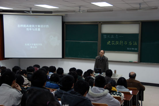 2010年2月25日,beat365官网邀请到了原东大建筑学院建筑系主任、博士生导师、一级注册建筑师黎志涛教授来给建筑系学生作题为“建筑设计与方法”的学术报告。当晚,4405教室座无虚席,能容纳120人左右的教室挤了将近200名学生。