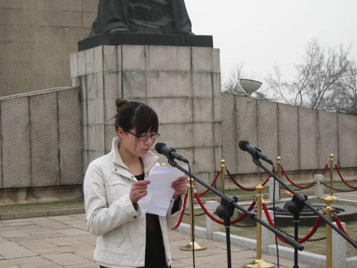 全体党员首先来到革命烈士纪念碑前,向革命先烈士们敬献花圈,默哀一分钟,表达了对革命烈士的崇高敬意和深切怀念。默哀结束后,2008级电气工程及其自动化专业陆青青同学代表学生作了发言,她号召全体学生党员要学习革命英烈的大无畏精神,坚定共产主义信仰,在今后的学习和生活中,一定要学习革命先烈坚强不屈、不怕牺牲的精神,提高专业技能,为祖国的繁荣富强而不断努力奋斗。