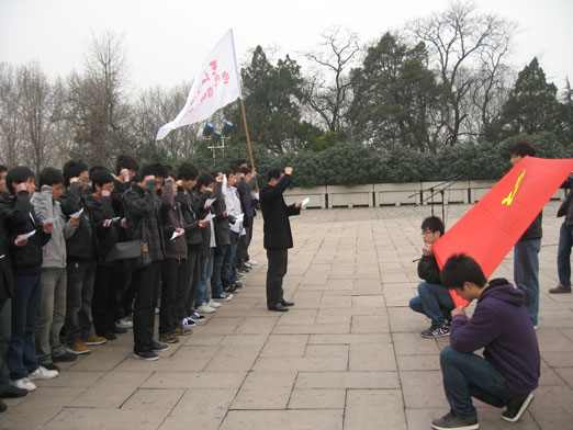 全体学生党员在纪念碑前庄严地进行入党宣誓