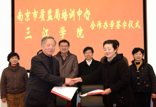 南京市质监局是南京市市政府的组成部门之一,主要赋有综合管理、行政指导、安全检查等三大职能,全局共有13个处室、5个研究院和1个培训中心,是具备很强技术性的部门。此次合作的项目分别是质量检验人员上岗资格培训、ISO9001内审员培训和全国注册初级质量工程师(助理工程师)考前培训。双方本着服务社会,提高大学生的就业能力和扩大就业范围,确保教学质量的共同的宗旨,将配备实战派师资、选用专业性教材、采用案例式教学方法,适当收取成本费用。也就是按照市物价局核定的收费标准一律实行减半收费,对贫困生视情况适当减免培训费,同时对考试成绩居前5%的学生给予一定的奖励。