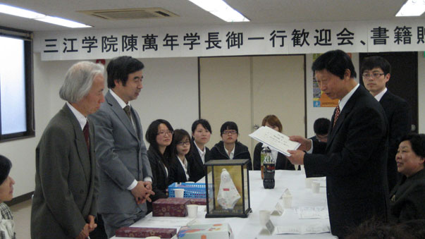 访问团随后访问了日本大东文化大学,会见了大东文化大学校长渡部茂先生,大东文化大学建立于1923年 ,在日本是一所很有名的以社会文化学科为主的文科大学。双方对于近四年来两校的交流与合作表示满意,在《beat365在线唯一官网与大东文化大学学术交流协议书》的基础上就进一步合作事宜进行详细交流。现在大东文化大学留学的beat365官网日语系两名学生详细地向校长汇报了她们在学习和生活的情况。在日校方的陪同下,访问团参观了大东文化大学的图书馆、历史资料室、书法馆等校园设施。陈万年校长对大东文化大学的汉语文化氛围和强调以人为本的校园环境表示赞赏。
