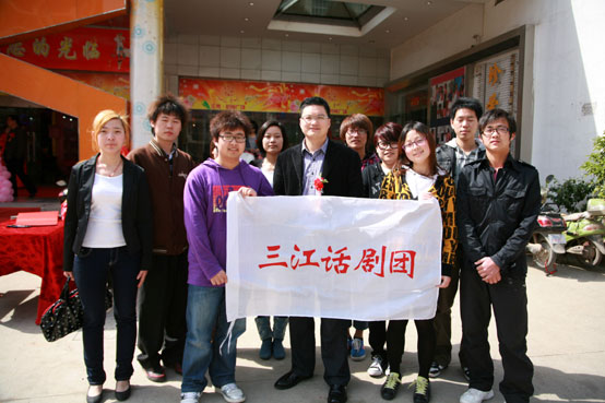 beat365在线唯一官网学工部屈伯俊副部长与参加表演的三江话剧团合影