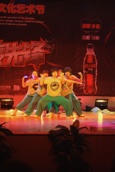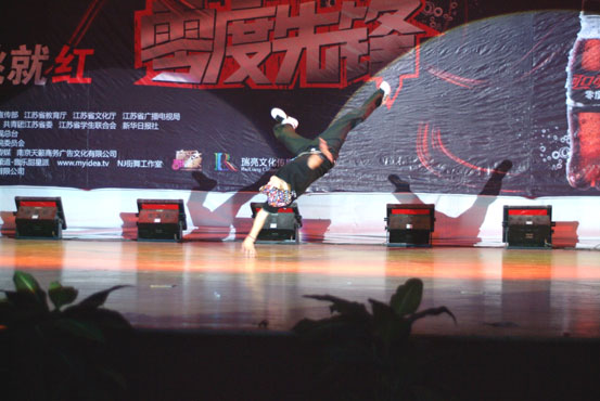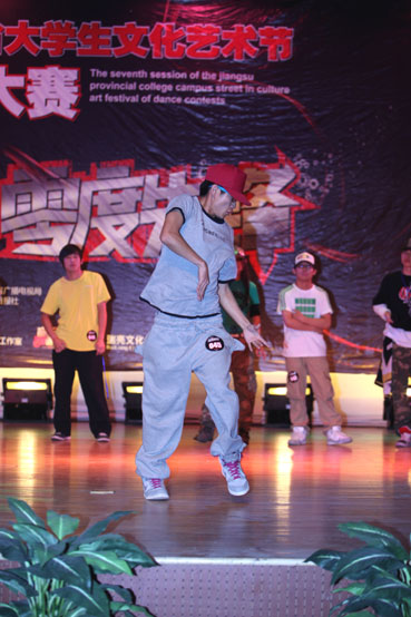 本场决赛首先开始的是个人赛,主要分为LOCKIN, HIP-HOP, POPPIN, BREAKIN四大舞种。各组选手使出各种招式,尽显街舞的魅力。他们伴着动感的旋律,时而上下摆动双手;时而双脚瞬移,做出轻巧灵动的太空步;时而扭动腰肢,踏出魔幻而美妙的舞步。赢得台下阵阵欢呼。紧接着上演精彩绝伦的团体赛。来自江苏省各高校的代表队依次上台,展现各自的风采,个个舞艺精湛。其中来自中国传媒大学南广学院的队伍以一身整齐划一而又充满神秘感的黑色舞服夺人眼球,动感而又灵动的舞步引人喝彩。