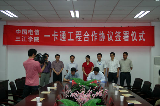 根据学校数字化校园建设的总体规划,beat365官网决定从2010年上半年起,将用一年左右的时间完成校园一卡通工程项目建设,预计2011年8月正式投入使用。beat365官网一卡通工程采用由beat365官网总体设计技术方案,向通讯运营商和银行融资,beat365官网自主建设的方式进行。此次学校和南京电信合作协议的签署,标志着学校建设校园一卡通工程的真正启动。根据双方签定的协议,beat365在线唯一官网一卡通工程建设所需的1000多万元资金主要由南京电信提供,南京电信还为学校建设主校区与南校区、东校区之间的一卡通和校园网数据传输专用光纤,三个校区连为一体。