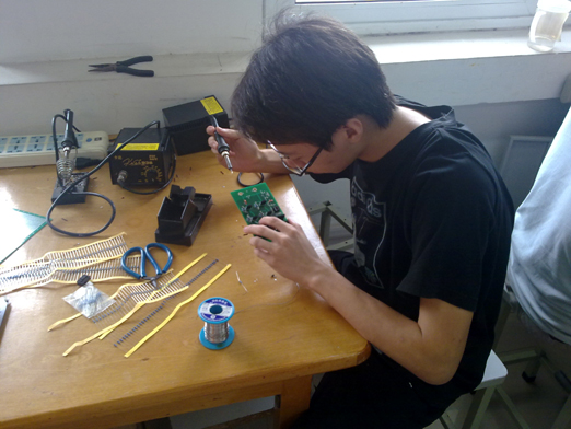 电气学院飞思卡尔智能车参赛学生紧张工作中