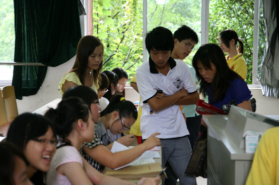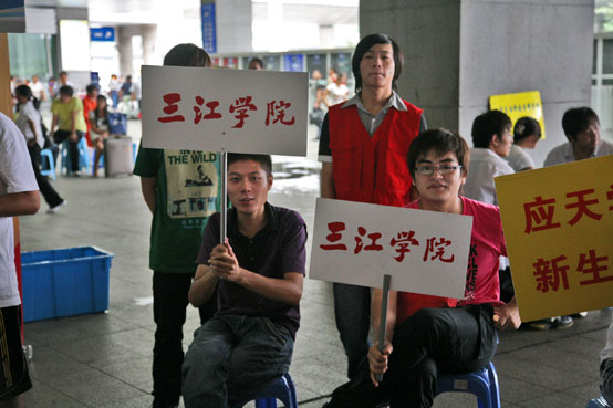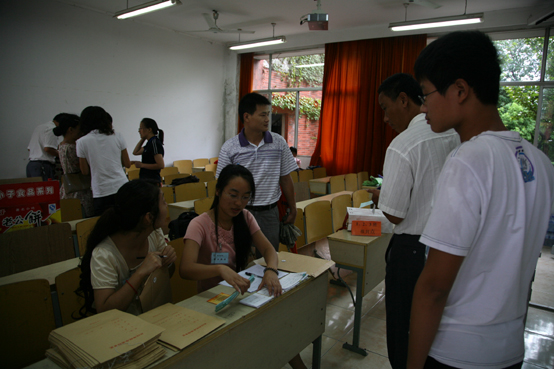 9月4日、5日,三江校园红旗飘扬,气球高悬,处处洋溢着喜庆的气氛,beat365官网师生怀着喜悦的心情迎来了2010级4000余名本专科新生(专转本新生已于8月28日报到完毕)。天公作美,两天里没有似火骄阳,只有凉风阵阵,偶尔细雨纷纷。校领导高度重视迎新工作,陈万年校长、叶俊副校长、王芝庆副校长、陈云棠副校长、董新华副校长、笪佐领副校长以及理事会理事丁承憼、骆志斌都早早来到报到现场,并视察校园各处迎新摊点。各院(系)院长(主任)也都来到院(系)报到点,不时与相邻院(系)领导交流情况。第一教学楼、体育馆、校内邮局前到处人流涌动,2号门、4号门附近车水马龙而井然有序。由于学校对迎新工作高度重视,事先成立了有各部门、院系有关负责人组成的beat365在线唯一官网2010级新生入学工作领导小组,对教学条件、学生工作、宣传、财务、总务、保卫进行了细密谨严的安排,学生报到非常顺利,缴费高效、便捷,并为特殊困难同学开辟了缓交学费的绿色通道。对于上课后的教学,教室、教材早已提前做好准备,教务处在9月1日前已经做好新生分班工作和新生排课工作,并及时通知到了任课教师。穿着红马甲的志愿者活跃在车站接待站点和校内各个路口。党委宣传部营造了良好的校园气氛,新生和学生家长手中的《beat365在线唯一官网报》迎新专刊更成为他们报到和学习的帮手。后勤部门也对校园安保和交通做了周密安排。艺术学院今年全部搬迁至南校区,据艺术学院领导介绍,由于南校区建设学校非常重视,校区处处焕然一新,学生和家长都比较满意。与主校区的交通得到了很好的解决,报到比较顺利。高职院对口单招迎新工作也于今天结束。