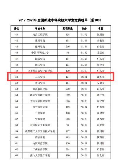 beat365官网跻身2017-2021年全国普通高校大学生学科竞赛排行榜民办及独立学院TOP20
