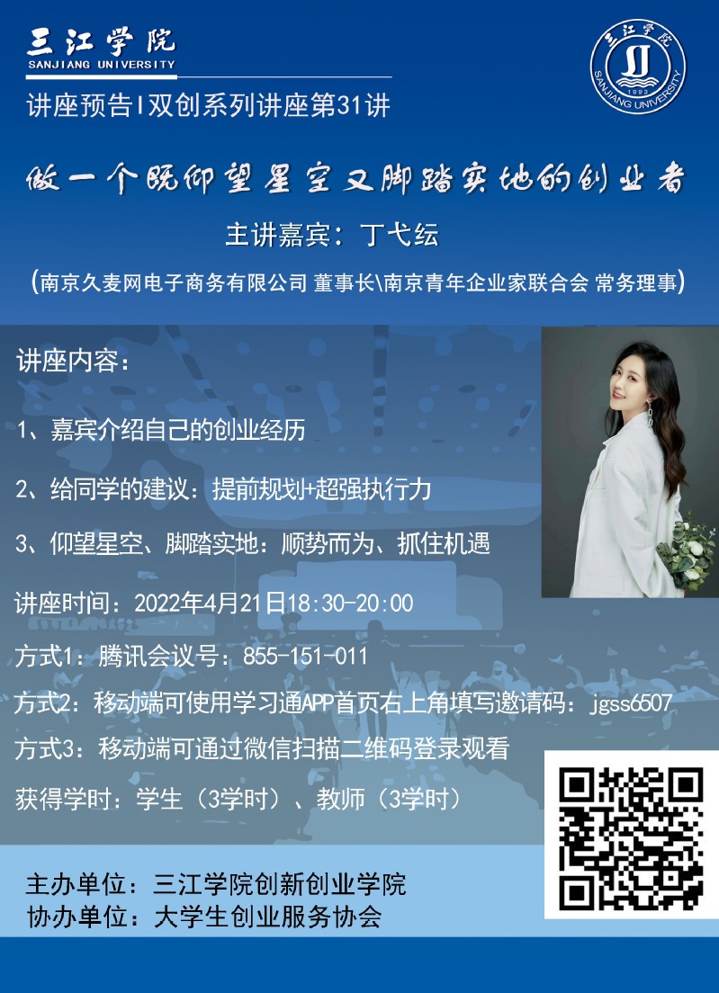 讲座主题:做一个既仰望星空又脚踏实地的创业者