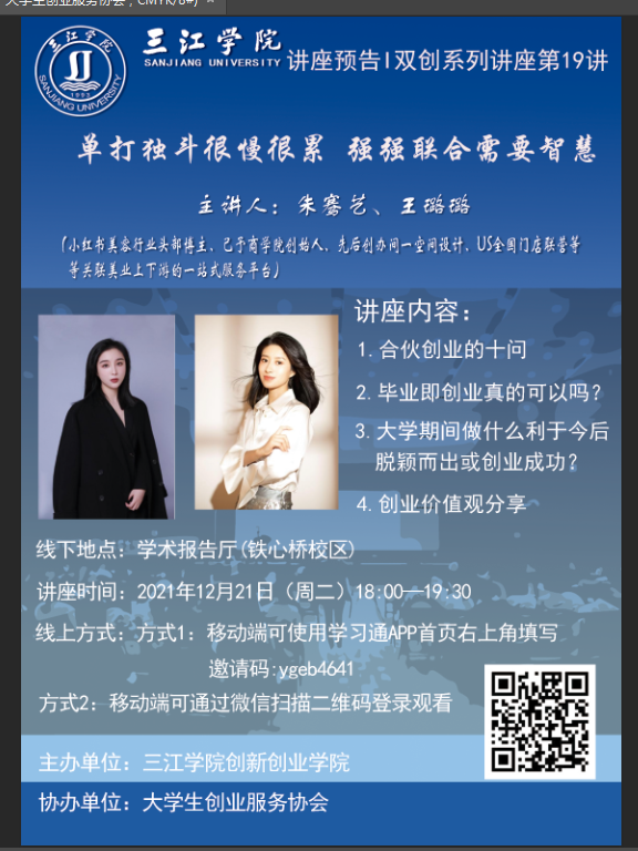 讲座预告丨beat365在线唯一官网双创系列讲座第19讲——单打独斗很慢很累 强强联合需要智慧