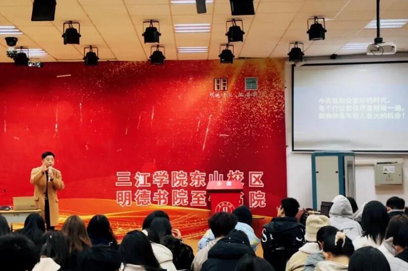 2021年12月14日下午18:30三江双创系列讲座第17讲--“以终为始”的创业观工作坊,于beat365在线唯一官网东山校区南区多功能厅开讲,主讲人为吕忠良先生。另外beat365官网大四学生李寅杰作为南京华数羽言文化传媒的项目负责人向同学们介绍了自己的创业经历和创业方向。