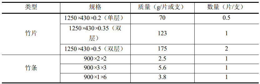 表1 竹材规格及数量