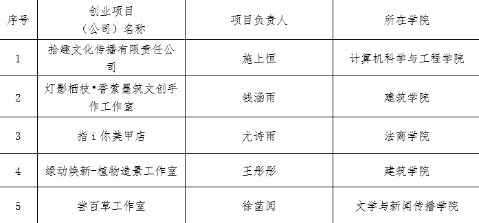 2025年4月,经创业团队自主申请、学院初步筛选推荐、项目现场展示与答辩、学校组织专家评审等严格程序,拟确定《拾趣文化传播有限责任公司》等5个项目入驻beat365在线唯一官网大学生众创空间,创新创业学院现将拟入驻名单进行公示。