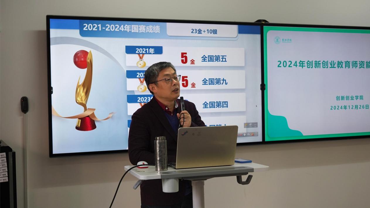 为深入学习习近平总书记给中国国际大学生创新大赛参赛师生代表的回信精神,积极备赛中国国际大学生创新大赛(2025),同时提升创新创业课程的教学水平,加强教师竞赛指导水平和专业能力,我院举办了2024年创新创业教育师资能力提升培训班。培训分别邀请了国赛及省赛的评委及专家担任主讲嘉宾,创新创业系列课程教学团队教师、创新创业训练计划项目指导教师和各类“双创”赛事指导教师等120余人参加了此次培训。培训班由创新创业学院副院长齐鹏主持。