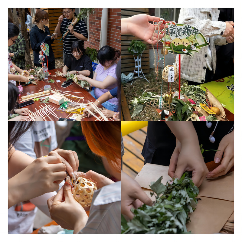 活动现场,同学们热情高涨,纷纷参与到艾草DIY项目中。首先,同学们亲手将翠绿的艾草叶片编织成精美的花束,不仅展示了花艺的无穷魅力,更为校园生活增添了一抹清新的绿色。紧接着,同学们利用传统竹编工艺,结合艾草特色,制作出寓意吉祥的艾草竹编小船,展现了端午节的浓厚氛围。最后,同学们将竹编技艺与香囊制作完美结合,创作出独一无二的艾草竹编香囊,充分展示了他们的创意和巧手。