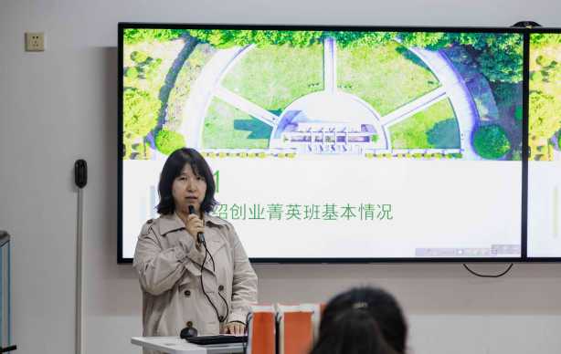 首先是创业服务部刘老师向菁英班同学介绍了课程管理机制,阐述菁英班组建的意义。创业是一条充满挑战与机遇的道路。在这个时代,创业者的队伍不断壮大,他们以独特的视角、敏锐的洞察力,创造了一个又一个商业奇迹。然而,创业的道路并非一帆风顺,它需要不断地努力、拼搏和坚持。她认为,在这个过程中,我们不仅需要个人的勇气和智慧,更需要一个共同成长的团队,一个提供支持和帮助的平台:创业菁英班。菁英班是一个集结了众多有激情、有才华、有远见的创业者的平台。这是一个共享智慧、共同成长、相互支持的平台。刘老师勉励大家共同学习、实践和探索,引导大家以创新的思维和务实的行动,开启创业的新篇章。