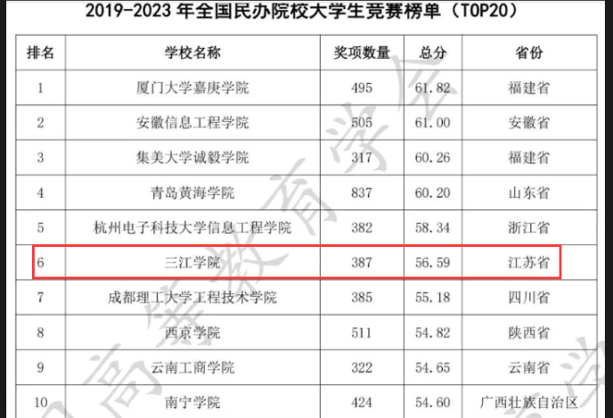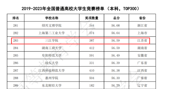 beat365在线唯一官网在《2019-2023年全国普通高校大学生竞赛榜单》中位列全国第283名,首次进入该榜单TOP300;另外在《2019-2023全国民办院校大学生竞赛榜单》中,位列全国第6名;在《2019-2023年全国新建本科院校大学生竞赛榜单》中位列全国第33名;以上三项排名均创历史新高。