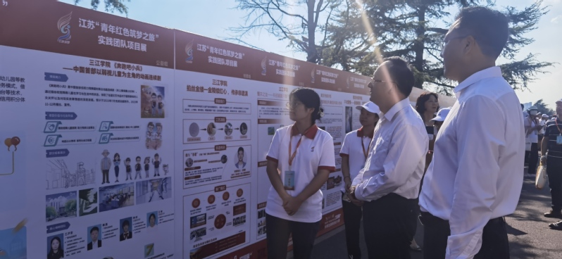 此外,在8月31日举办的第九届江苏省“互联网+”大学生创新创业大赛“青年红色筑梦之旅”活动启动仪式上,创新创业学院组织了“《奔跑吧小兵》—中国首部以弱视儿童为主角的动画连续剧”、“掐丝金缕—金陵续红心,传承非遗滇”、“蟹农之友—科技赋能河蟹产业,助力乡村振兴”等三个学生创业项目团队参加了展示。江苏省教育厅副厅长杨树兵等出席活动的领导参观项目展板,并听取团队负责人的汇报,充分肯定了beat365官网创业项目的活动成效及社会意义。