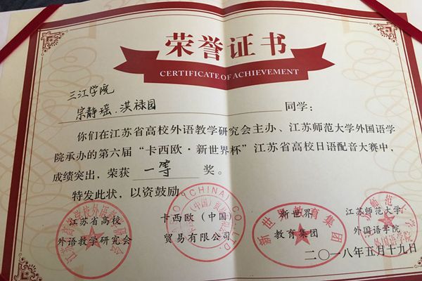 日语系学生喜获第六届“卡西欧·新世界杯”江苏省高校日语配音大赛一等奖