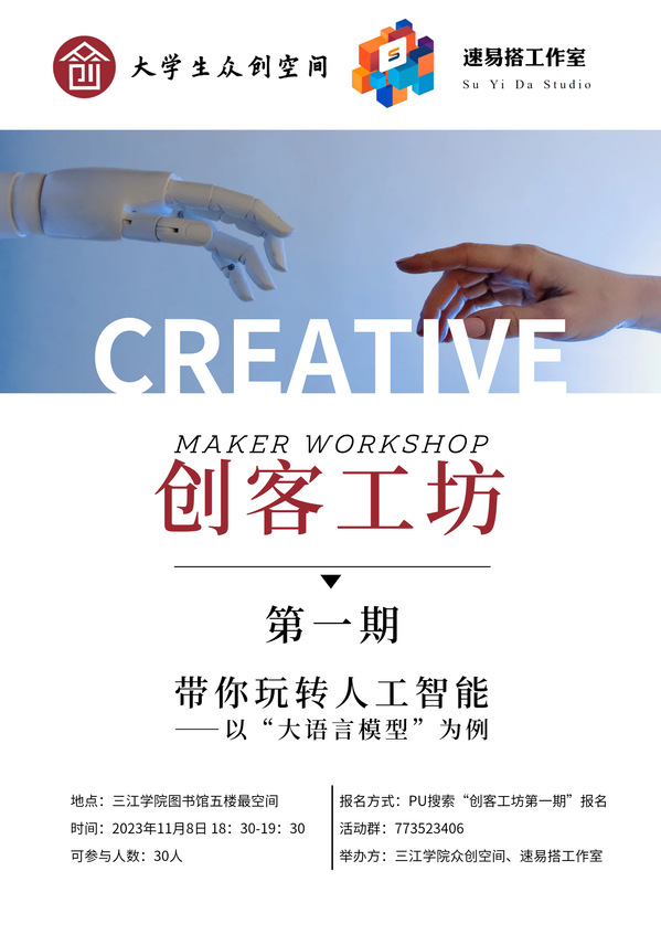 活动预告丨创客工坊第一期 带你玩转人工智能——以“大语言模型为例”