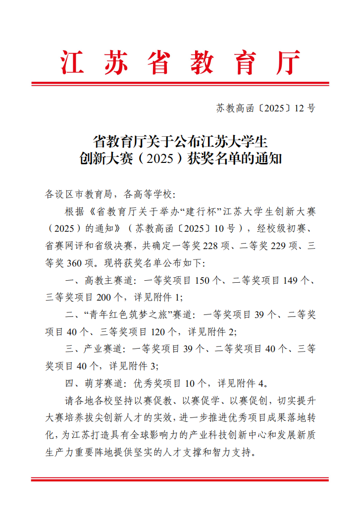beat365官网在江苏省大学生创新大赛(2025)中获佳绩